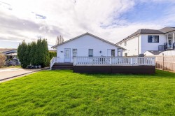 Welcome to this incredible 1363 sqft 2 bedroom 2 bathroom rancher with everything done but to move in. Recent renovations include a new kitchen, new flooring, new paint, and new bathroom vanities. A beautifully laid out family room and dining room with cozy gas fireplace, flow into the spacious and bright renovated kitchen. Entertain on your expansive and recently built 34ft deck in your sun filled private oasis back yard. Rear lane access with a 20' x 30' concrete pad already poured for RV parking, a shop or secondary dwelling. Perfect for downsizers not wanting the stress of strata ownership, a hobbyist or a young family looking to put down roots in an incredible community. Don't miss this one!