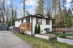 This affordable East Abbotsford home offers excellent value with a large, renovated one-bedroom, one-bathroom suite with a separate entry, ideal for added income or extended family. The main living area features two bedrooms and one bathroom, along with new windows, bringing in plenty of natural light and improving energy efficiency. The main level offers a bright and comfortable living space with a cozy fireplace and a dining area filled with natural light. Out back, the home opens onto a private, park-like greenbelt with a year-round creek, creating a peaceful backyard setting surrounded by nature. There is a well-built storage shed out back and the side provides space for RV or boat parking.