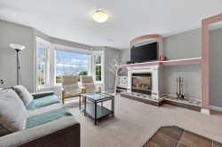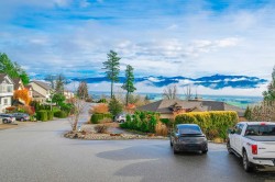 Beautiful Mountain View! This basement entry home boasts an open main floor plan that is above none other. New renovation include: New roof(2025), New Dishwsher/garburator(2025), New Hot waterTank (2024), New washer/ Dryer/ Hoodfan/ Stove(2018) ,hardwood flooring, large kitchen with granite counter tops and the dining room is ideal for entertaining and offers an outstanding view of the Fraser Valley and mountains. Master bedroom comes with a 5 piece ensuite, large walk in closet, adjoining balcony to enjoy your morning beverage. Den can use a as a bedroom,Downstairs is a bright family room, a bedroom, Storage, a wine storage, hobby room and an additional bathroom. large 2 car garage with a workshop off to the side. Minutes away from all amenities and all nestled into a quiet cul de sac.