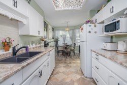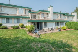 LOCATED in the highly sought-after CEDARBROOK VILLAGE, this charming ground-level, 1-storey townhome offers the perfect blend of convenience and comfort. Situated in a prime location close to shopping, dining, hospital and transit. Originally the show home, it features 2 bedrooms, 2 bathrooms, and a bright white kitchen with updated countertops, newer laminate flooring. The living room has a cozy gas fireplace, and the front and back patios offer a wonderful outdoor space, with the back patio overlooking a private common yard. Located in a well-maintained complex, it's perfect for those seeking a stair-free, low maintenance lifestyle. 55 plus complex. Replaced hot water heater 2023, new pressure regulating valve June 2024,New roofs being done. This home is ready to move into.