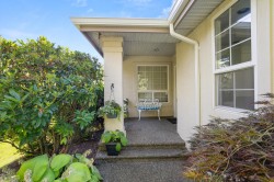 Welcome to LakePointe Villas, nestled around Ponderosa Park Lake and linked to the Discovery Trail system! This rare rancher-style end-unit townhouse with a walkout basement offers luxurious, low-maintenance living in one of Abbotsford’s most desirable communities. Enjoy a brand-new 2025 roof, views of the Airshow from your main floor sundeck, and added privacy beside mature greenery. The spacious layout includes 3 bedrooms, 3 full bathrooms, soaring 12-ft ceilings in the living room, granite counters, crown moulding, laminate floors, new carpet on stairs, and updated appliances. The basement boasts a large rec room, large workshop with water and 220 power, carpeted crawlspace, and a covered patio. Additional features include a new furnace & A/C. RV parking available. Pets allowed!