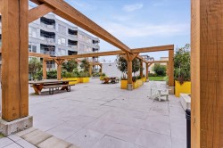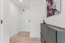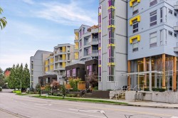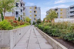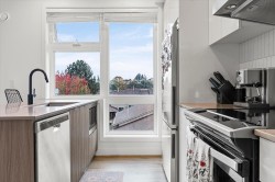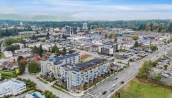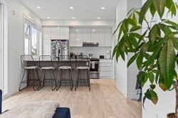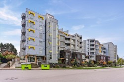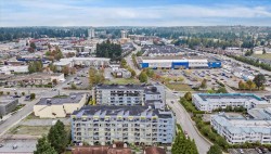Modern 1-bedroom corner condo in Central Abbotsford offering stylish, walkable city living. Located in The Court, this bright home features an open-concept layout with 9-ft ceilings, oversized windows, and northeast exposure capturing morning light and Mount Baker views. The contemporary kitchen includes flat-panel cabinetry, quartz countertops, stainless steel appliances, and a large island with bar seating. The living area connects to a Juliet balcony that brings in fresh air and natural light. The bedroom offers generous closet space, complemented by a modern 4-piece bathroom. This move-in-ready home includes secure underground parking and a storage locker. Pet- and rental-friendly strata. Steps to Sevenoaks Mall, restaurants, parks, and transit in a walkable city-centre location.