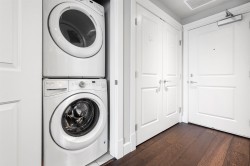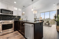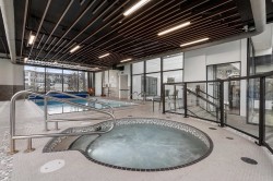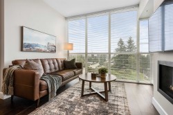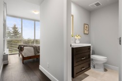 East-facing condo in Mahogany at Mill Lake! Enjoy breathtaking views of Mt. Baker and Mill Lake through floor-to-ceiling windows that flood the home with natural light. This 2-bedroom, 2-bath residence features geothermal heating and cooling, engineered hardwood flooring, heated tile bathroom floors, high-end fixtures, a gas fireplace, and a spa-inspired ensuite with a rain shower. Mahogany offers resort-style amenities including an indoor pool, hot tub, fitness centre, bistro, workshop, outdoor BBQ area, car wash, and 2 guest suites. Just steps to shopping, dining, and Abbotsford Regional Hospital, this home combines luxury living with unbeatable convenience.