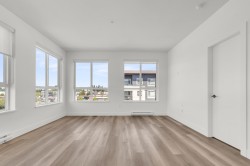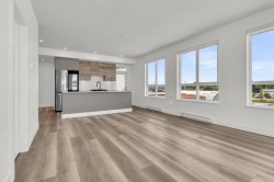 Top-Floor Corner Gem at Highstreet Village! This brand-new CORNER 5th-floor 2-bed, 2-bath home puts you above it all in Abbotsford’s most talked-about new community. With windows wrapping around the living and kitchen area, you’ll love the bright, open feel every day. The modern kitchen shines with stainless steel appliances, a gas stove, touchscreen fridge, quartz counters, and a big island with sink—perfect for cooking and entertaining. The funcitonal layout offers bedroom separation for privacy and wide plank floors for style. Step out to your covered balcony for fresh air and an open view. Comes with parking, storage, and access to awesome amenities like a gym and party room. Walk to shopping, dining, and be on Highway 1 in minutes. Move-in ready with quick possession available!