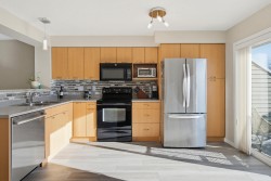 Meticulously cared for 3 beds/ 2 bathroom unit in The Sage at Auguston! Upgrades include vinyl plank flooring throughout the main floor, fridge and dishwasher. Incredibly bright open floor plan on the main floor. Upstairs you'll find 3 bedrooms including master with walk-in closet & ensuite. A covered front porch and a back balcony as well with a lovely sunset view. Great location in the complex with ample street parking out front and fully fenced yard with gate. Large double tandem garage and room for a 3rd vehicle on the driveway. Amazing location with hiking/ biking trails, Auguston Traditional School and Ledgeview golf course all within walking distance.