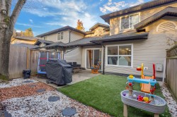Beautiful two-story townhouse offering exceptional space and privacy. This home features a bright, open floor plan with a generous living area and a large private patio perfect for outdoor living. The main floor includes a convenient two-piece powder room. Upstairs are three well-sized bedrooms and three bathrooms. Enjoy the ease of a side-by-side double garage and the benefits of a well-maintained, private complex with a swimming pool. Ideally located close to all amenities, this home delivers comfort, convenience, and outstanding value.
