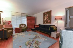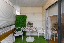Immaculate 2-bedroom ground-floor apartment in a quiet 55+ community offering exceptional space and comfort. The home features a beautifully updated kitchen with new appliances, modern cabinetry, and a spacious, functional layout, along with in-suite washer and dryer. The cozy yet generous living room easily accommodates larger furniture. Two well-sized bedrooms and a large bathroom with a walk-in shower. Enjoy two private balconies (north and south facing) and access to a rear green space. Amenities include a community garden, pool table room, meeting/party room, and workshop. Centrally located in Abbotsford close to shopping, parks, transit, and daily essentials. Strata fee includes heat and hydro.