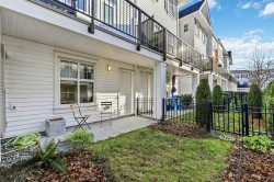 Very inviting 7-year-old bright townhouse located in the centre of a family-oriented complex, offering a quiet setting away from traffic. This 3-bedroom 2.5-bath home features an open-concept main level with 9ft ceilings, east-west exposure for all-day natural light and spacious living and dining areas. The modern kitchen includes quartz countertops, ample cabinetry, pantry, KitchenAid gas range plus access to a large balcony and powder room. Upstairs offers a master bedroom with walk-in closet and ensuite, two additional bedrooms, second full bathroom and laundry closet. Includes 2-car tandem garage, lots of storage space, private backyard, laminate flooring throughout, epoxy garage floor, and short distance to shopping, schools, sports centre and Aldergrove Park. Showings by appointment.