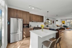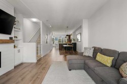Welcome home at Harvest at Westerleigh by Polygon! This 3bdrm, 2bthrm townhome blends modern comfort w/ family-friendly living in 1 of the area’s most desirable communities. Built by renowned local builder Polygon, the home is part of a master-planned complex featuring award-winning amenities—including an outdoor swimming pool, lounge, hockey rink, theatre room, & more. Inside, you’ll love the open-concept main floor, highlighted by laminate flooring & thoughtful upgrades. A custom fireplace surround creates a warm focal point in the living area, while the full kitchen island & added shelving and cabinetry offer style & extra storage. Upstairs, find 3 generously sized bdrms, perfect for families or guests. Step outside to a private backyard.