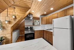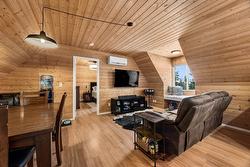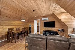 Nestled on a secluded 9-acre lot, this unique 1-bedroom, 1-bathroom home presents an incredible opportunity for those looking to build their dream residence. Thoughtfully designed above a spacious triple garage, it offers a cozy yet functional living space with modern amenities and comfortable interiors. A Carrier 2-ton high-efficiency heat pump with air conditioning (installed August 2023) ensures year-round comfort. One of the garage bays has been converted into a versatile office but can easily be restored to its original use. The shop is well equipped with a pellet stove, a 125-amp panel, and a 240V plug—ideal for a variety of projects. An oversized 3,405 L septic tank adds peace of mind and capacity for future expansion, and the property also includes the seacan, offering additional storage. With a second hydro meter already in place, the groundwork is set for future development when you’re ready to bring your dream home to life.