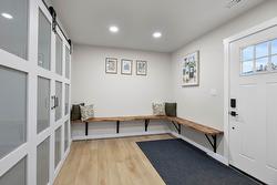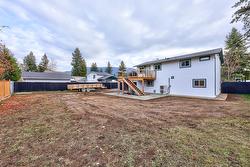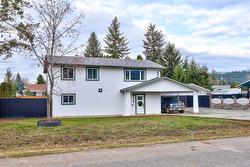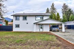 This stylish and substantially updated 4 bedroom home sits on a flat 0.23-acre fenced lot in a desirable neighbourhood. The main floor features a modern kitchen with stone countertops, new appliances, updated fixtures, & custom lighting—flowing into the bright dining & living room area with access to the new permitted deck (railing to be completed). Also on this level is the oversized primary bedroom with large closet & elegant ensuite bathroom, a second bedroom or office, & a convenient 2-piece powder room. The walk-out lower level features an expansive foyer, two additional good sized bedrooms, a brand-new full bathroom, spacious laundry area with a new washer & dryer, & ample utility/storage space. Extensive upgrades include: new insulation with vapour barrier, new electrical and plumbing, new drywall & paint, new flooring, new windows, updated doors & hardware, new furnace/heat pump, soffits, stucco, improved drainage, landscaping, new fencing with gate, & a new driveway. Roof approx. 5 years old. Carport plus extra parking complete this move-in-ready home. This home shows like new inside & out, making it a must see! On town water system. Call today for a private viewing or full information package. Quick possession possible!