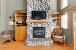 Welcome to Tree Tops, one of Big White’s most sought-after developments offering true ski-in/ski-out convenience via the Mogul Cat Track. This 2 Bed/3 Bath townhome combines mountain charm with modern comfort, making it the perfect getaway for family, friends, or rental guests. Step inside to an airy, open-concept layout highlighted by soaring ceilings & abundance of natural light. The main living area features a stunning floor-to-ceiling river-rock fireplace surrounded by custom built-ins—the ideal centerpiece for cozy evenings after a day on the slopes. Just off the living room, you’ll find your private hot tub, a perfect spot to unwind under the stars. The large kitchen is designed for entertaining with shaker cabinetry, a sit-up island, and plenty of prep space. A versatile loft overlooks the living area, providing a fun hangout for kids and includes a sofa bed for extra sleeping accommodations. Upstairs, both bedrooms offer private ensuites, while one also includes a flex/den space that can easily be used as an additional sleeping area. With a variety of flexible layouts, this home is well-suited to host multiple families or groups. The timeless design blends rich tones, wood accents, & a cozy mountain feel throughout. Additional conveniences include a covered parking stall directly across from the unit & two storage lockers-one for owners and one for guests. This turnkey property is equally perfect as your personal mountain retreat or a high-demand rental investment!