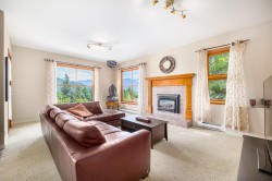 Charming mountainside home featuring breathtaking coastal mountain & ocean views. Set upon a private lane & mere steps away from the shops, cafes & services of Artisan Square. The community shuttle will also whisk you to/from the many amenities of Snug Cove & ferry. You are greeted by a covered porch and a lovely side garden that leads you to a back terrace perfect for barbecues or lounging. A concrete pad in place allows for an auxiliary structure (office, greenhouse). The first floor features a generous sized family room with fireplace for cozy nights along with a bedroom & bathroom. The upper level boasts an open plan. Primary bedroom on this level leads to a covered deck. Recently updated roof (50 yr warranty), bathrooms & kitchen, outfitted with Bosch, Fisher & Paykel appliances.