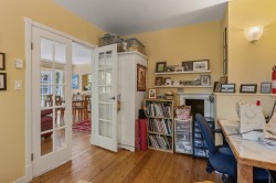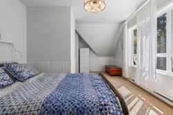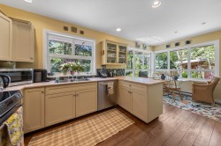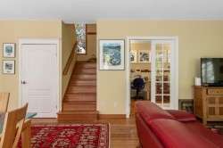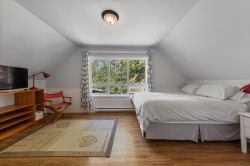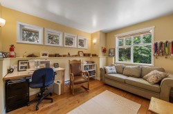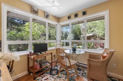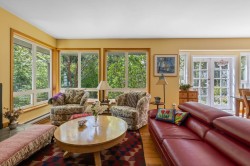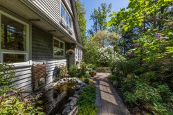 Perched on picturesque Cates Hill, this beautifully secluded 3-bedroom home offers peace, privacy, and nearly an acre of lush grounds. Surrounded by greenery, this tranquil retreat invites you to relax and unwind. Inside, the bright and airy open-concept living and dining area is filled with natural light, featuring rich hardwood floors and a cozy wood-burning fireplace that adds charm and warmth. The upper level includes a generous primary suite with ensuite bath, while two additional bedrooms, a full bathroom, and a convenient main floor powder room complete the thoughtful layout. French doors off the dining room open to a sun-soaked patio, ideal for relaxing or entertaining in the garden setting. Bonus features include a private outdoor shower & covered secondary patio.