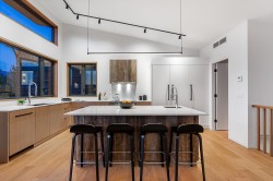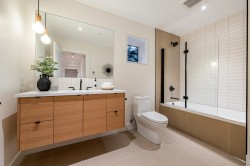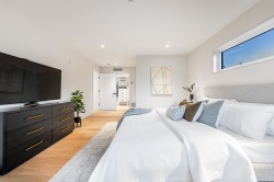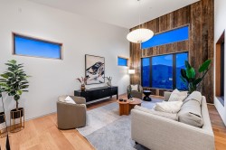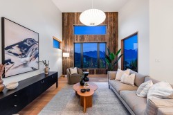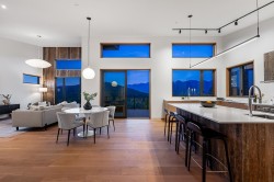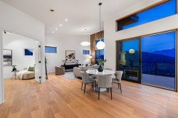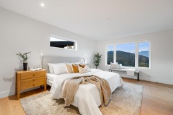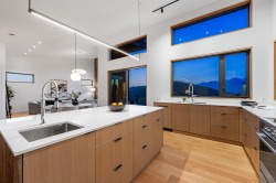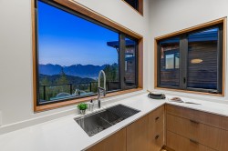 Perched at the very top of Cates Hill, this brand-new two-level home is thoughtfully designed to maximize breathtaking panoramic views of the mountains and ocean. Featuring 3 bedrooms and 3 bathrooms, the intelligently planned layout places all entertaining areas, decks, and bedrooms to take full advantage of the spectacular scenery. The open-concept main floor flows seamlessly from the kitchen and dining area onto a spacious, entertainment-sized deck—perfect for gatherings or quiet evenings enjoying the view. Also offering a large home office also designed to enjoy the views. The lower level offers 3 bedrooms and 2 bathrooms, including a generous primary suite with a spa-like ensuite featuring dual sinks, a large walk-in shower, and a well-sized walk-in closet.