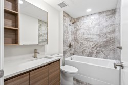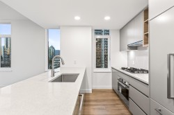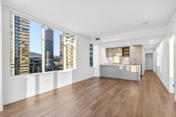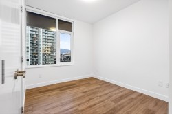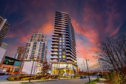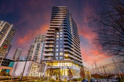 Welcome to this bright and spacious 3 Bed + Den corner home at Alaska by Amacon in the heart of Brentwood. Open-concept living with oversized windows, high ceilings, and beautiful city and mountain views. This well-designed layout features a large 243 sq.ft. wraparound patio for seamless indoor-outdoor living, a modern kitchen with integrated high-end appliances, gas cooktop, soft-close cabinetry, and sleek finishes throughout, plus A/C and heating for year-round comfort. The versatile den is perfect for a home office or extra storage. Enjoy top-tier amenities including a gym, party room, business centre, games room, and outdoor courtyard with BBQ and play area. Comes with 2 parking and a storage locker. Steps to Brentwood Mall, SkyTrain, restaurants and shops.