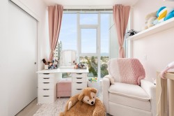 Welcome to King’s Crossing by renowned Cressey Development. Conveniently located beside Highgate Village where daily needs are effortlessly met downstairs with grocery stores (Save-On-Foods & PriceSmart), local favourite restaurants, and countless retail shops. Spacious 2 bed, 2 bath home featuring the famous Cressey Kitchen that delights every chef with its abundance of cabinetry and rare side-by-side fridge. Enjoy year-round comfort with A/C. Ultimate privacy with the bedrooms positioned on each end of the home. Relax after a long day in the Spa-Inspired Bathroom or on the enlarged covered balcony. Resort-style amenities include a clubhouse, fitness centre, basketball court, steam/sauna—just to name a few. 1 Parking and 1 Locker included. Experience the best community in Edmonds!