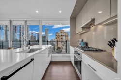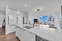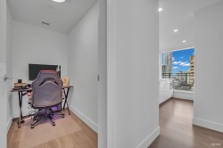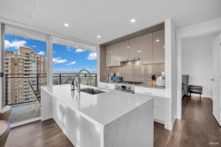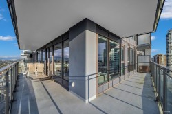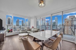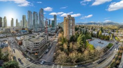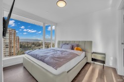 Sussex by Townline – Metrotown. Concrete high-rise just steps to Metropolis at Metrotown and SkyTrain. Bright and quiet south-west facing corner unit with unobstructed mountain, park, and city views. Functional 2 bedrooms + den, 2 baths, air conditioning, and Bosch & Blomberg appliances and a recently upgraded full-size LG washer & dryer. Features a spacious 320 sq. ft. balcony, 1 parking and 1 locker. Over 6,000 sq. ft. of premium amenities including fitness centre, bowling lounge, guest suite, and 24/7 concierge. Prime location close to shopping, schools, parks, and all daily conveniences.