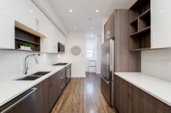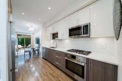 Welcome to Villo Metrotown! a boutique townhouse community just steps from Royal Oak SkyTrain! This spacious 3 bed + den, 2.5 bath home, 1500 SF across 4 levels, featuring a bright open-concept layout, 9' ceilings, laminate flooring, and a modern kitchen with Bosch/Fisher & Paykel appliances, gas stove, and quartz countertops and is move in ready. Enjoy two large patios—including a private rooftop deck off the luxurious top-floor primary suite with walk-in closet and 5-piece en-suite. Includes direct access to TWO secured underground parking stalls, ample storage, and a flex room/office. Triple-glazed windows, smart lighting. Just minutes to Metrotown, Bonsor, Deer Lake, shops, dining & more! , Call your agent now. Open House Sunday January 25th, 1-3pm.
