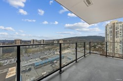 This beautiful 2-bed,2-bath plus a large den is a corner unit located in the iconic City of Lougheed by Shape Properties. Stunning 270-degree views of the city and mountains from an expansive 398 sqft wrap-around balcony. The unit is fully air-conditioned and features high ceilings, quartz countertops, and stainless steel Bosch appliances. The world-class amenities include an 18,000 sqft clubhouse, 24/7 concierge service, a gym, yoga studio, games room, co-working spaces, and a party lounge.The apartment is conveniently located next to Lougheed Mall, easy access to restaurants and grocery stores. It is also just steps away from the Skytrain, providing easy transport to both the Millenium and Evergreen lines.1 parking 1 storage.A perfect blend of luxury & convenience for an urban experience