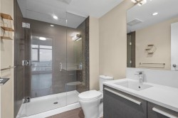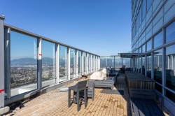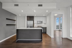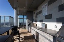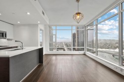 BETTER THAN NEW! Over 860sqft. 2 BED, 2 BATH, 2 STORAGE LOCKERS Freshly Painted! Bedrooms are set up for ultimate privacy on either side of the condo perfect for roommates! Spacious kitchen with Gas Cook top and Breakfast Bar, Quartz Countertops and AC for Warm Summer Days! Oversize Glass Walls capture Breathtaking Mountain Views from each Room! 24hr CONCIERGE, Fully equipped Gym, hotel style change rooms with showers, 49th Level Lounge with full Catering kitchen for up to 100 guests and 360 degree VIEWS from indoor and outdoor spaces, Basketball Court, Pickleball, outdoor Courtyards with BBQ’s for gatherings. Embrace an elevated lifestyle in this picturesque haven—with Steps to Transit, atop the Amazing Brentwood, Whole Foods and all your modern conveniences!
