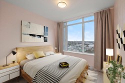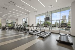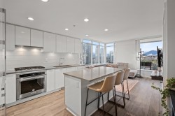 FULTON HOUSE by Polygon. This 22nd-floor Northwest corner home has 2 bedrooms and 2 bathrooms with clear mountain and city views. The 800 sq. ft. layout is very private, with the bedrooms located on opposite sides of the living area. The L-shaped kitchen includes stainless steel appliances, a gas cooktop, and a large center island for extra counter space. With 9-foot ceilings and large windows, the home gets plenty of natural light. Owners have access to the 28,000 sq. ft. Fulton Club, which includes an outdoor pool, hot tub, sauna, and gym. The building is a short walk to Gilmore SkyTrain and very close to The Amazing Brentwood mall, shops, and restaurants. Includes parking and storage. A well-kept home in a great location.