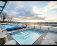 Welcome to an exceptional 2-bedroom, 2-bath residence offering stunning city, water, and mountain views in vibrant Brentwood. Ideally located steps from Gilmore SkyTrain, this coveted floor plan features 9-foot ceilings, a generous 200 plus-sq-ft patio, and an open-concept gourmet kitchen with Bosch appliances and a large island with a breakfast nook. Bedrooms are thoughtfully separated for privacy, and the home includes central air. Amenities abound: rooftop pool, jacuzzi, steam room, fitness center, guest suite, piano room, business center, yoga studio, and concierge. Includes one parking and one locker. Just moments from shopping, dining, and entertainment. Open house: Saturday, February7, 2026, from 1 to 3 p.m.