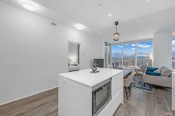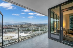 The Amazing Brentwood Tower 2—showcasing one of the building’s best and rarely offered floorplans. This corner residence features an exceptional nearly 400 sf wrap-around balcony with panoramic views of the North Shore mountains and rolling hills. Enjoy stunning sunrise and sunset vistas from the bright, spacious living area. The thoughtfully designed 2-bedroom & DEN, 2 full-bath layout remains cool and breezy in summer, sheltered from the afternoon sun. The strata is currently working on AC installation project. Residents enjoy 24/7 concierge, and amenities including a fitness centre, yoga studio, guest suites, entertainment rooms, and a terrace garden. Located steps from the Brentwood Mall with premier shopping, dining, entertainment and the Skytrain. Includes 1 parking and 1 locker.