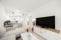 Perched high above the city, this elegant one-bedroom residence offers a rare sense of calm. Wake up to golden morning sun and unwind on your private balcony with views that stretch to the horizon. The interior feels incredibly spacious thanks to high ceilings and a clever, efficient layout designed for effortless living. With year-round A/C and premium finishes, comfort is never compromised. At Akimbo, life is simplified with luxury amenities and a location that puts the best of Burnaby—from fine dining to rapid transit—within a five-minute stroll. Modern, quiet, and perfectly connected **OPEN HOUSE, SAT, JAN 31 , 2 - 4 PM**