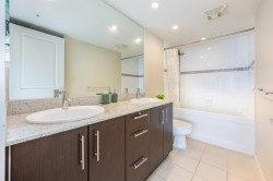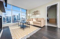 Welcome to see Watercolours by Polygon! This 2 beds, 2 baths with spectacular panoramic views of Metrotown, downtown & North Shore mountains from your balcony & floor to ceiling windows. Walkable to skytrain, Brentwood mall and more. Excellent open concept floor plan with S/S appliances, granite counter tops with kitchen island, engineer laminate flooring and more! Good size Balcony for BBQ or enjoy a glass of wine looking at the sunset after work. Large walk-in closet in the master bedroom with double sinks in ensuite. Building amenities include gym, spa, sauna and a clubhouse for your private events. This unit comes with 1 parking and a bonus storage Locker. DON'T MISS OUT.