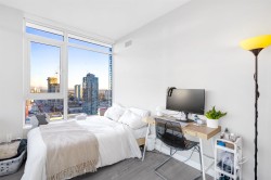 Beautiful northeast 2-bedroom corner unit on the 29th floor of Sovereign by Bosa offers 110 sq. ft. of balcony space and stunning panoramic views of Deer Lake, the North Shore Mountains, and the city. Features include central A/C, over-height ceilings, Miele appliances, Kohler fixtures, stone countertops, gas stove, and NuHeat bathroom floors. Enjoy 5-star amenities—indoor pool, sauna, gym, lounge, concierge, parking, storage, and bike room. Ideally located steps to Crystal Mall, Metropolis, restaurants, schools, SkyTrain, and Central Park.
