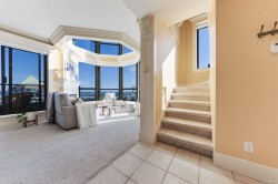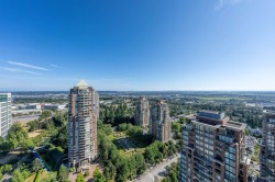 Architectural Masterpiece: Classy loft-style Penthouse at the desirable City in the Park! Surrounded by Byrne Creek Park & manicured European gardens, this luxurious gallery-inspired residence offers 3BR/3BA, 4 balconies & 3 parkings, w/ forever-protected breathtaking panoramic views of the city, park & water. Tastefully renovated by a renowned Italian builder w/ Roman-style architectural refinement, this home is filled w/ natural light streaming thru soaring ceilings, while cross-breezes enhance its airy elegance. Upgrades include a brand-new kitchen, motor blinds & custom closets. Steps to Edmonds SkyTrain; 5 star resort-style amenities: pool, steam/hottub, guest suite, theatre, clubhouse & fitness centre. Taylor Park Elementary & Byrne Creek Secondary catchment.
