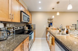 Welcome to Luna, a boutique low-rise building in Burnaby's vibrant Metrotown neighborhood. This 1-bedroom plus den condo offers a spacious open layout with abundant natural light from beautiful bay windows. The modern kitchen features stainless steel appliances and granite countertops, seamlessly flowing into the living and dining areas with laminate flooring throughout. The den provides a versatile space for a home office or guest room. Located just a 5-minute walk from Metropolis at Metrotown and Royal Oak SkyTrain Station, this condo combines comfort and convenience in a central location.