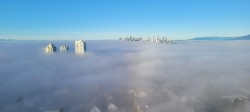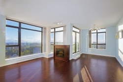 Rare PENTHOUSE | 270° Panoramic Vistas | Total Privacy. This premier SW Corner 3-Bed, 2-Bath home features a breathtaking sweep of Fraser River, Mt. Baker & DT Skyline. Upgrades (2020): High-quality engineered hardwood floors in all bedrooms, fresh interior paint throughout, & new quartz counter/sink in 2nd bath. Features 9' ceilings, quartz counters in kitchen/ensuite, 2 balconies & 2 SIDE-BY-SIDE PARKING. NEW Appliances: Fridge, Hood, Washer/Dryer (2020); Dishwasher (2024); Gas Stove (2025). Steps to Highgate shopping, dining & SkyTrain. Luxury Move-In Ready Home Above The Clouds.