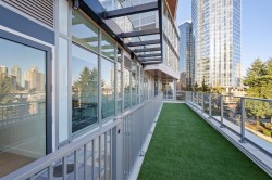 Welcome to Highline, an exquisite luxurious high-rise located in Metrotown, just steps from SkyTrain, Metropolis, Crystal Mall, banks, library, cafes and restaurants. This 32nd floor south-western facing home offers breathtaking unobstructed views, spacious balcony and functional layout. Luxurious features include airy 9' ceilings, AC, high-end Miele appliances and microwave combination oven, engineered quartz stone countertops and full-height backsplashes, porcelain and marble tiles surround shower, shower ledge, Italian-made cabinetry, magic corner kitchen, remote controlled roller blinds. Enjoy exceptional amenities, including a large state-of-the-art gym and yoga studio, sky lounge with BBQ, spa/sauna, study room and game room. Perfect for living or investment. Priced to SELL!