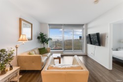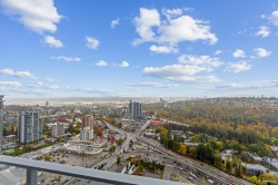 The City of Lougheed Tower One developed by the renowned Shape Properties. Located in Metro Vancouver's only mast planned community, featuring three Skytrain Lines, a major bus loop along with a shopping center. This A/C building offers a spacious kitchen island & high end European Bosch appliances, including a side by side washer & dryer, complemented by laminate wood flooring. This bright Jr. 2 BDRm & 2 bathroom, high ceilings with stunning views. 24/8 world class amenities including the art gym, pool table, party rooms, outdoor BBQ area, yoga studio, study spaces, children's play areas etc.... One EV parking space & a locker included, making it ideal for investors & those looking to live in a vibrant community!