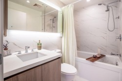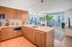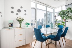 Welcome to The MET by Concord Pacific. This quiet NW-facing corner home is perched high above the city, offering stunning, wide-open views of the North Shore Mountains, Burnaby Lake, Deer Lake, and the city skyline. The bright 2 bedroom, 2 bathroom layout is designed for modern living with high ceilings, wide-plank flooring, and a sleek contemporary kitchen featuring a gas cooktop and premium appliances. Thoughtful upgrades include air conditioning, heat pump, water filtration system, custom shower glass, designer wallpaper, and window coverings. Enjoy true lock-and-go living with a grand hotel-style lobby, 24/7 concierge, indoor pool, full fitness centre, yoga studio, lounge, golf simulator, and bowling alley. Steps to SkyTrain, Metropolis, parks, and dining.