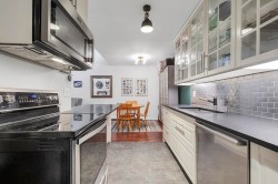 Top floor and nearly 13-foot vaulted ceilings. Bright, airy, and open. Lush greenery right outside your windows creates wonderful privacy and delivers cozy, elevated tree-house vibes you’ll love coming home to. Here’s the fun twist: a super-unique 377 sqft full attic, perfect as in-suite storage or a secret kid-cave / creative hideaway, complete with a rolling access platform. Separate underground storage and you finally have room for all the summer and winter toys. Large, renovated kitchen flows into a dedicated dining area that easily fits the whole family, ideal for real dinners, not just bar stools. Huge bedrooms, you simply can't find in modern condos. Full WOOD SHOP stocked with tools, GYM(squat rack), Pool, Sauna, Hot tub in a well run building and pro-active strata.