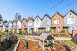 LOW Strata Fee. METRO Townhouse by MOSAIC Located at Royal Oak SkyTrain Station. This over 1600sf 3 Bed 2 Bath + Den INSIDE Unit (NOT facing Burlington) is North & South facing w/ 2 Parkings. Modern finishes inclu. Quartz countertops in kitchen & bathrooms, Brand name Hansgrohe faucets, Toto and KitchenAid PLUS UPGRADES (Pls Ask). ALL Bedrooms are very Good Size w/ bay windows. 9ft ceiling on Main w/ private patio access fm living room; Over 10ft3 ceiling at basement w/ a Large DEN / Office & a Mud room. STEPS to SkyTrain Station and Bonsor park & Community center, walking distance to Metropolis Metrotown Mall w/ shopping, grocery, dining & Entertainment; Schools are ALL within 3 blocks away. TWO parking direct access fm basement; Pets & Rentals allowed. Please CALL now as this Won't Last.