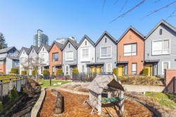 LOW Strata Fee. METRO Townhouse by MOSAIC Located at Royal Oak SkyTrain Station. This over 1600sf 3 Bed 2 Bath + Den INSIDE Unit (NOT facing SkyTrain) is North & South facing w/ TWO Parking. Modern finishes inclu. Quartz countertops in kitchen & bathrooms, Brand name Hansgrohe faucets, Toto and KitchenAid PLUS UPGRADES (Pls Ask). ALL Bedrooms are very Good Size w/ bay windows. 9ft ceiling on Main w/ private patio access fm living room; Over 10ft3 ceiling at basement w/ a Large DEN / Office & a Mud room. STEPS to SkyTrain Station and Bonsor park & Community center, walking distance to Metropolis Metrotown Mall w/ shopping, grocery, dining & Entertainment; Schools are ALL within 3 blocks away. TWO parking direct access fm basement; Pets & Rentals allowed. Please CALL now as this Won't Last