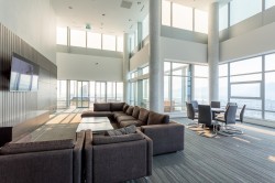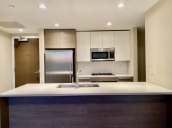 Luxurious 2-bedroom apartment with den in the Atlus Tower of Solo District by Bosa Appia Developer with Leed-Gold standards/Geo-Thermal heating/ Air conditioning cooling system. 180 degree panoramic skyline / mountain / downtown water views. 2 bedrooms are separated from each other for privacy. Bright Westerly unit with 2 bathrooms , 9’ ceiling, Stainless steel appliances, Cortez counter-tops / bar sitting in the kitchen and big balcony! Amazing amenities including 5,000 SF club house on top floor with roof deck, kitchen/dining area, outdoor lounge, firepits, BBQ, roof garden and gym plus 24 hours concierge service. Convenient location just across the street from Brentwood Mall, skytrain station and shops. Easy access to Metrotown/Downtown. 1 parking stall and 2 storage lockers included.