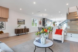 Introducing a BRAND-NEW HALF-UNIT located in the BACK BUILDING of a peaceful Burnaby Lake enclave, set on a rare Approx. TOTAL 50 X 194 FT LOT. This thoughtfully designed home offers 3-Level OF LIVING with 5 BDRMS and 5 Bathrooms, ideal for large or extended families. The main floor features a Bright OPEN-CONCEPT LAYOUT with a MODERN KITCHEN, dining area, and powder room. Upstairs includes 3 BDRMS , 2 BATHS, and a PRIVATE BALCONY Off the Primary Suite. The lower level provides 3 ROOMS, 2 BATHS, A large REC. RM, and a SEPARATE ENTRANCE. Enjoy A/C, Radiant Heat & Heat Pump, Security Cameras, PRIVATE FRONT & BACK YARDS, and REAR 1-CAR GARAGE. Nestled on a QUIET CUL-DE-SAC, close to TRANSIT, SHOPPING, PARKS, AND MAJOR ROUTES.