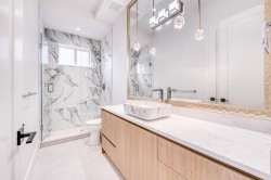 Brand new luxury home in prime Burnaby location! Situated on the high side of a quiet street with unobstructed mountain & city views. 6,000 sq.ft. lot with over 4,000 sq.ft. of refined living space. Bright north-south exposure and open-concept layout. Gourmet kitchen & wok kitchen with premium appliances and modern finishes. Upstairs features 4 spacious bedrooms, including a stunning primary suite with spa-like ensuite and walk-in closet. Legal 2-bedroom suite + potential 2-bedroom suite ideal for mortgage helpers. Equipped with radiant heating, A/C, HRV, central vacuum & smart home system. Close to Burnaby Hospital, BCIT, SFU, Metrotown & Hwy 1. Comes with 2-5-10 New Home Warranty.Open House: Jan 25, Sun, 2-4pm.
