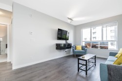 Welcome to Polygon’s Veritas in the heart of SFU’s UniverCity. This bright 2-bed, 1-bath home offers 767 sq.ft. of efficient living with 9' ceilings and a smart, open layout. The gourmet kitchen features quartz countertops and stainless steel appliances, opening to a comfortable living and dining area. The primary bedroom enjoys direct access to a covered balcony, your quiet spot for morning coffee. A spacious 5-piece bathroom (separate tub and shower, double vanity) serves both bedrooms. Full-size front-load laundry, radiant in-floor heating and hot water included in the maintenance fee. Secure parking, plus access to the building’s gym and amenity room. Move-in ready and steps to campus, transit, shops, cafes, and endless trails. Easy to Show!