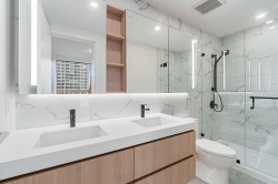 Central Park House, Bosa Properties' newest Metrotown landmark. This 2 bed west facing unit features a functional layout, striking floor-to-ceiling windows, offering expansive views and abundant natural light. Designed for luxury and comfort, access world-class amenities featuring a double ceiling height heated indoor swimming pool, elegant club lounge, full concierge service, hotel-inspired entrance, and over 2,000sf fitness centre. Conveniently located steps away Central Park, public transit, and shopping, this residence blends modern design with resort-style living in one of Burnaby's most desired locations.