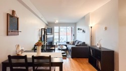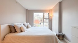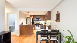 Welcome to Mondeo! Beautifully appointed 2 bed + den, 2 bath upper floor home in one of Burnaby's most desirable neighbourhoods. This bright and spacious 833 sq ft unit features an open-concept layout with hardwood floors, granite counters, stainless steel appliances, gas range, and large windows that fill the space with natural light. The private balcony offers peaceful city and mountain views - perfect for evening sunsets. Primary bedroom includes a full ensuite and generous closet space. Enjoy in-suite laundry, secure parking, and storage locker. Concrete low-rise built in 2007, pet and rental friendly. Steps to cafes, restaurants and shops along Hastings Street, with easy access to transit and downtown Vancouver. A perfect choice in Burnaby Heights!