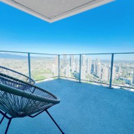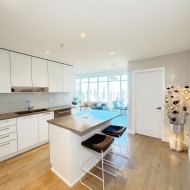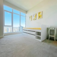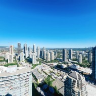 Exceptionally well-kept 41st floor, sub-penthouse corner 2 bed home. Spectacular 230 degree view in Brentwood. 926 sqft w/ thoughtful layout maximizing privacy between bedrooms and ensuite master bath with soaker tub. The gourmet chef's kitchen features gas stove, full-size stainless steel appliances and quartz countertops and lots of storage. Enjoy luxury living w/ spa-like baths, AIR CONDITIONING and 9 ft ceilings. Home comes with 1 Parking and Locker. Escala amenities: Concierge, Indoor pool, hot tub, dry + steam saunas, gym, dance studio, theatre, ping pong rooms, meeting rooms, 2 guest suites, party room and visitor parking. Greet the day with beautiful views of the sunrise over the mountains; this home delivers an elevated lifestyle inside and out.