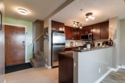 Top floor corner 2 bed, 2 bath condo with 2 parking and storage locker! This bright home features vaulted ceilings in the living area, newer vinyl plank flooring, fresh carpet, and a southeast view. The second bedroom is upstairs in the loft—ideal as a guest room or office. Just a 5-minute walk to Edmonds SkyTrain and close to shopping, schools, and parks. A rare find offering comfort, convenience, and style! Quick Possession Possible!