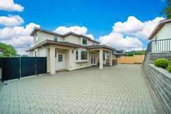 Rarely available luxurious south-facing corner-lot with panoramic view of the Fraser River, situated in the desirable South Slope area. Centrally located, close to Metrotown, Crystal mall, restaurants etc. Beautiful and clean street in quiet neighbourhood with cherry blossom tree line, perfect balance between convenience and privacy. Custom-built with top of the line materials and appliances such as Subzero fridge and Wolf range, Kohler toilets, faucets, and showers, steam room, jacuzzi tub and body jets, home theatre etc. Main floor conveniently designed with in-law suite. Property equipped with central vacuum system, HRV, radiant heating and AC unit. Spacious garage can easily accommodate two cars, upgraded to EV charging. Don't miss out!