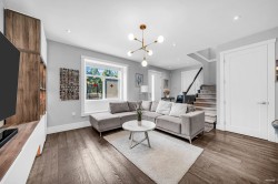 WELCOME TO DEER LAKE RESIDENCES – A boutique collection of custom-built 2-storey duplexes in the heart of Burnaby, nestled between Deer Lake and Burnaby Lake. Quiet inside—no traffic noise. This 5 bed, 4 bath home offers over 2,000 sqft of quality living with engineered hardwood, quartz counters, S/S appliances, radiant heat, Control4, H.E. furnace, wireless security, irrigation, fruit trees, and two balconies. Oversized windows bring in year-round light. **BONUS**: 1-bed ground-level nanny suite—great mortgage helper! Feels like a detached home with private outdoor space. Walk to Buckingham Elem, 3-min to Burnaby Central Sec.
